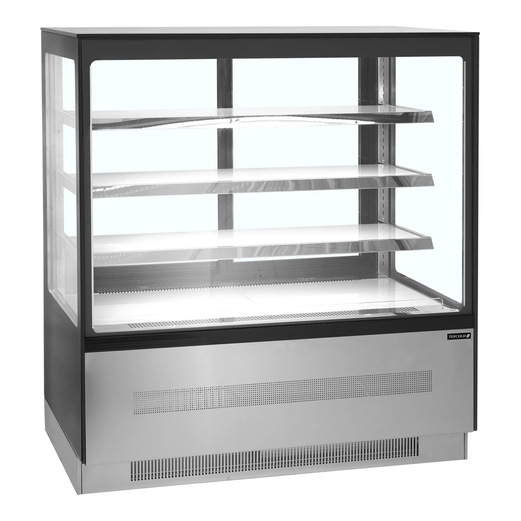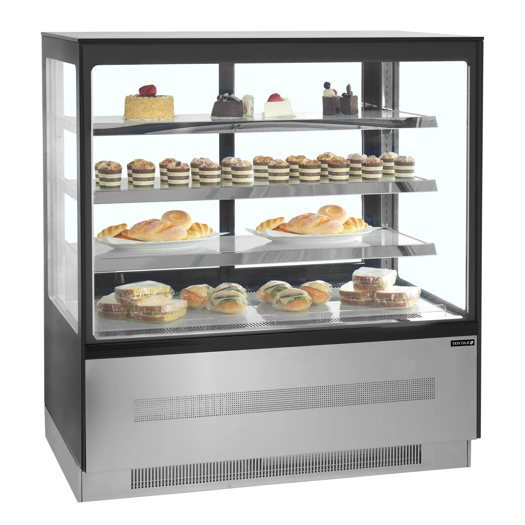 Kølemontre på 210 liter med flad top - til kager, sandwiches og meget mere. Modellen er udført med dobbelt glas og anti-kondens i front og har glasskydedøre på bagsiden. Nedkøling mellem 2 og 8°C. 3 hylder. B:90 x D:75 x H:135 cm