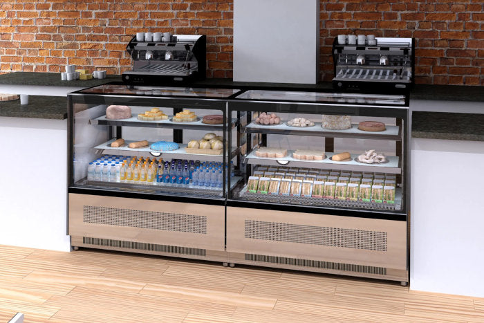 LPD-serien fra Tefcold er særligt populær i bagerier og caféer. De har flytbare hylder, og fås både med vinklet front og buet front som giver bedre overblik.