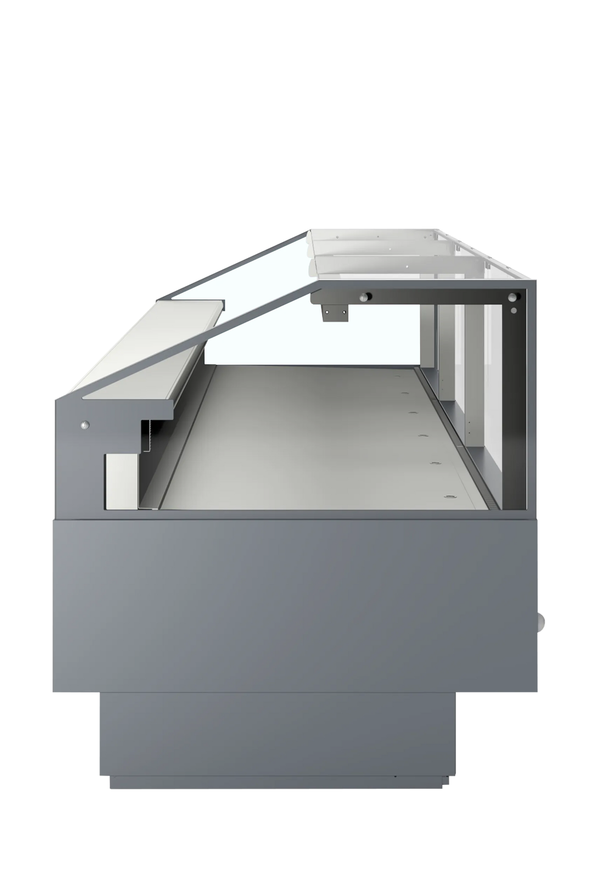 Flot og praktisk køledisk til delikatesseforretning. Med en dækplade på 82,5 cm, får du gode betingelser for at udstille færdigretter, oste og kød. Anti-kondens forbedrer udsynet. Praktisk 25 cm dyb bordplade i rustfrit stål til at have en bakke eller noget indpakningspapir stående og fladt topglas på fronten. Det letter ekspeditionen. Ventileret køling som sikrer temperaturen er korrekt og dine råvarer holder sig friske. Opbevaringsplads under disken. Frontglas kan let slås ud, for en nemmere rengøring sidst på dagen. Disken kan sammensættes i moduler.