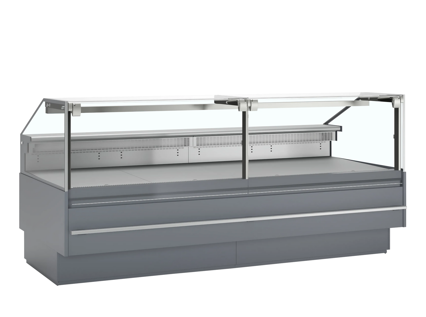 Flot og praktisk disk til slagterforretning. Med en dækplade på 90 cm, får du gode betingelser for at udstille større udskæringer i bakker. Anti-kondens forbedrer udsynet. Praktisk 25 cm dyb bordplade i rustfrit stål til at have en bakke eller noget indpakningspapir stående og fladt topglas på fronten. Det letter ekspeditionen. Ventileret køling som sikrer temperaturen er korrekt og dine råvarer holder sig friske. Opbevaringsplads under disken. Frontglas kan let slås ud, for en nemmere rengøring sidst på dagen. Disken kan sammensættes i moduler.