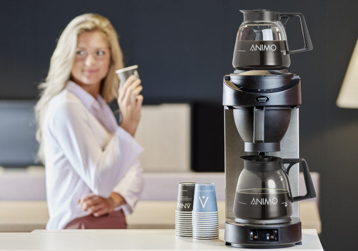 Vi er specialister i filterbryggere fra Animo, som er kendt for en rigtig god kvalitet. Du kan altid købe ekstra kaffekander og passende kaffefiltre med en leveringstid på 1-2 arbejdsdage.
