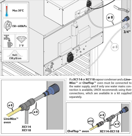 Steam condenser til Unox BAKERLUX & LINEMISS manuelle konvektionsovne. Den eliminerer damp og lugte fra madlavningsdampene. Den kan kun tilsluttes én ovn.