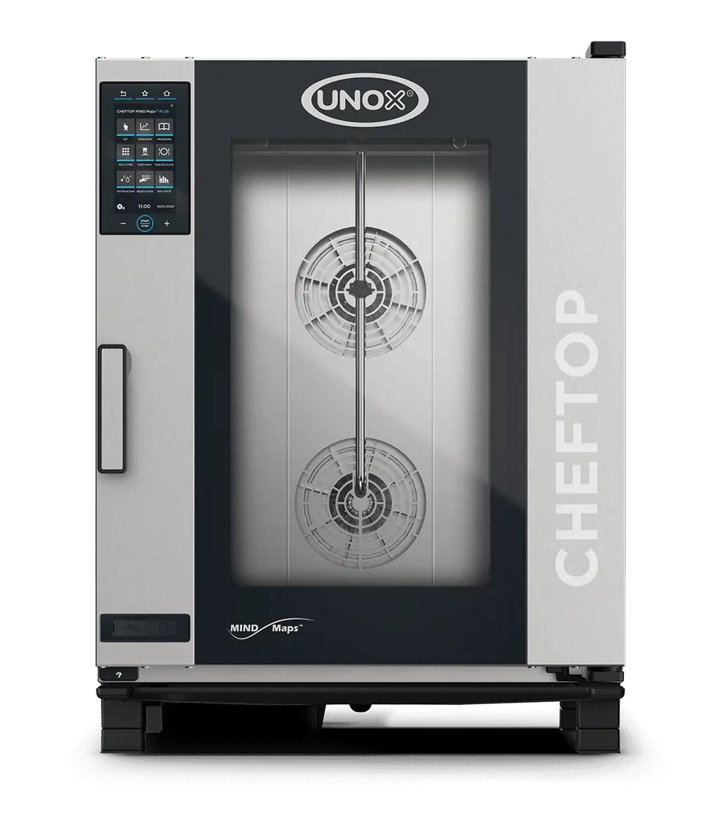 Unox Cheftop Plus til gas er en moderne kombiovn med damp og vaskesystem. Den kan styre luftfugtighed, kernetemperatur og gemme opskrifter - kort sagt, den ideelle restaurantovn. Den er Energy Star Certificeret og sparer dig omkring 20% i dit gasforbrug på grund af den gode isoleringsevne.