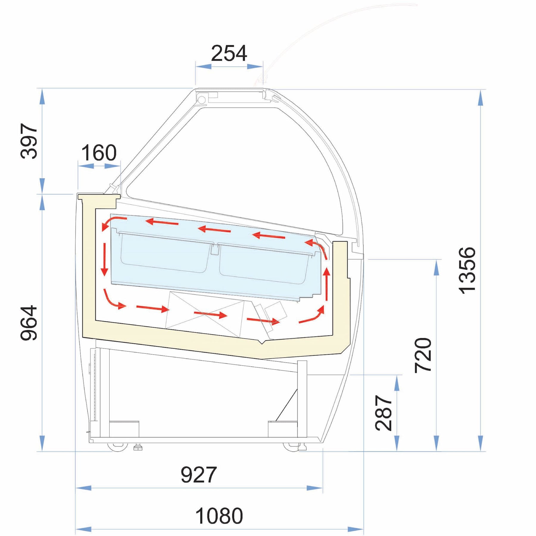 The Millennium series is from Italian ISA and has ventilated cooling that distributes the air evenly under the ice cream, making it suitable for homemade ice cream/Gelato.