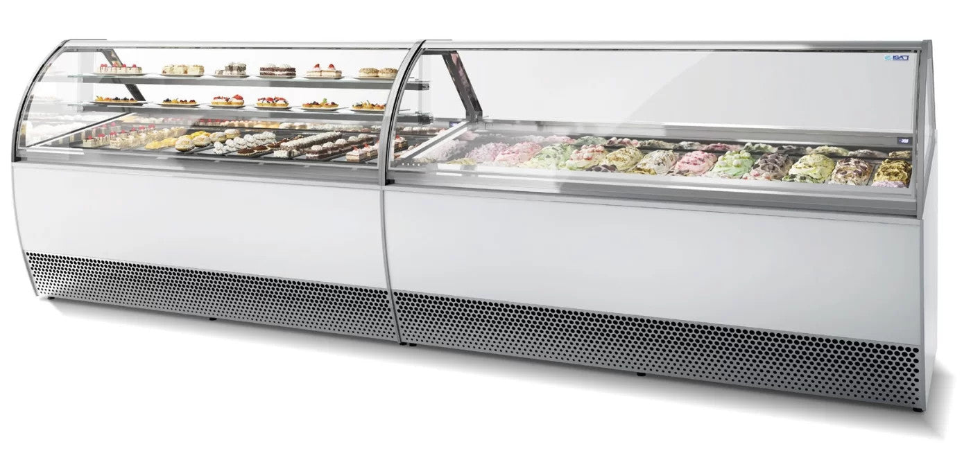 The Millennium series is from Italian ISA and has ventilated cooling that distributes the air evenly under the ice cream, making it suitable for homemade ice cream/Gelato.