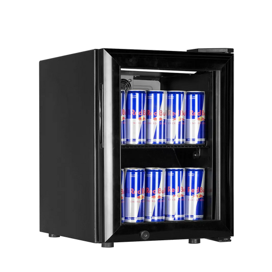 All our products on this site are made with glass doors for the sale of soft drinks and beer in bottles or cans. Display refrigerators have generally become better at cooling in recent years, and are thus also better suited for food that must be kept at a maximum of 5°C. Before you buy, however, you should check that your chosen refrigerator can go down to 0°C or a maximum of 2°C. Ultimately, however, it is your own responsibility to monitor and ensure that the cabinet maintains the temperature. The food authorities are not always happy that you store food in a refrigerator with a glass door. Alternatively, you can choose an upright storage refrigerator.