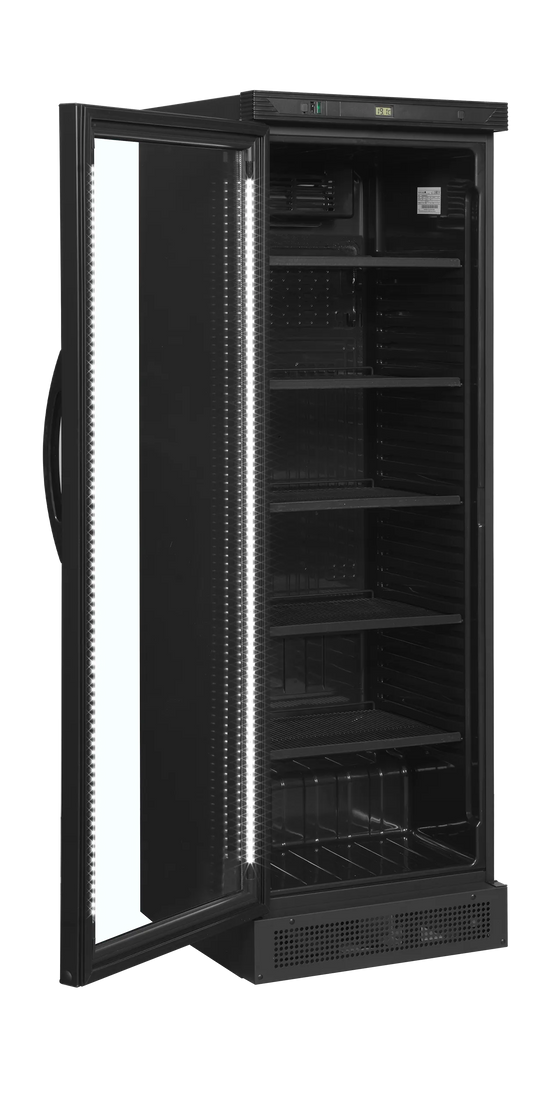 The CEV425 series from Tefcold consists of a black and a white model, each of which is available with and without a light top for branding. These refrigerators are clearly our most popular models because you get a lot of value for money. We have sold them for approx. 10 years, as some of the only ones in Denmark. So we have many happy customers who have such a cabinet standing.