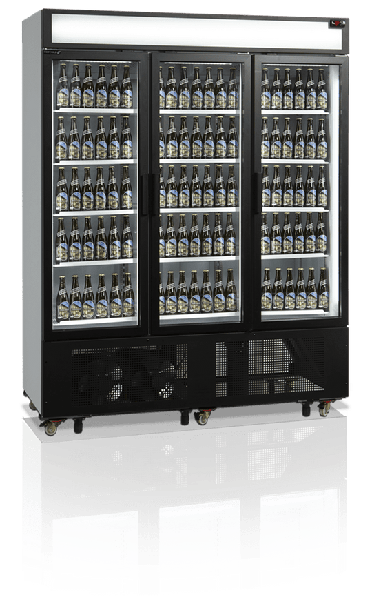 A display fridge is an industrial fridge with a glass door, developed for commercial purposes, where the drinks are beautifully displayed in e.g. shop or restaurant. Many also call it a bottle cooler, as it is used for drinks in most cases.
