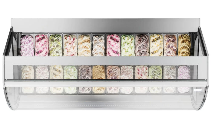 An ice cream counter is necessary to be able to sell scoop ice cream and italian gelato. If you sell Italian ice cream (gelato) you must have an ice counter with a ventilated freezer, as it is important that the temperature is maintained exactly throughout the day, regardless of how hot it is. If you have to serve regular ice cream , such as Premier ice cream, then a model with a static freezer can be used.